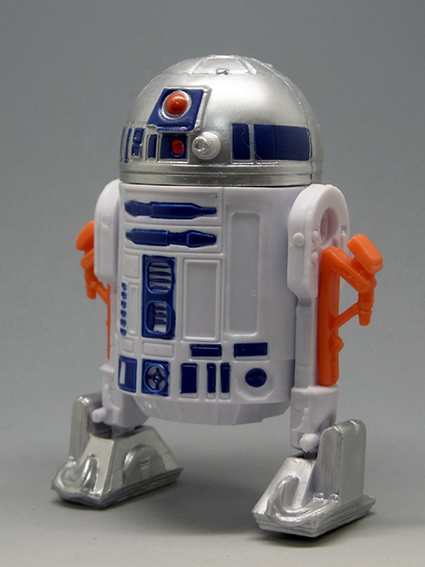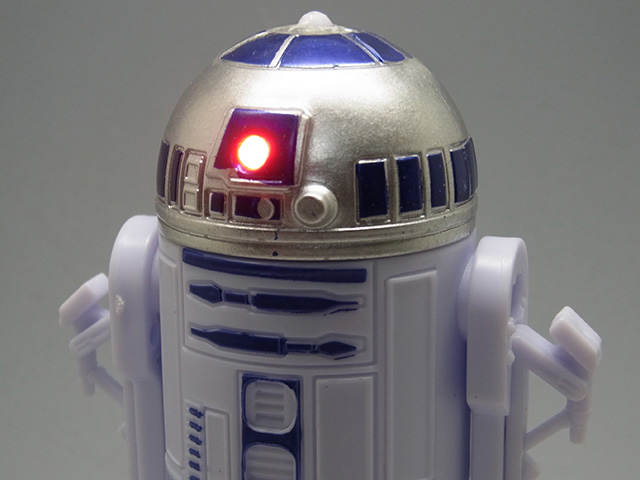 ハズブロのBlack6インチ版R2-D2を模したもの。全ABS製で、再現が難しいバッテリーケーブルとかはあっさり省略。腕というか脚の側面パネルを外してブースターロケットに交換するギミックも(一応)踏襲してる上に、頭頂部のボタンでカメラアイが発光するLEDギミックも付いている。全力で平均点を取りにいった印象。