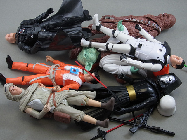 珍しく発光ギミックがない6インチ全10体セットの残骸。1個のR2-D2のためにこれだけゴミにすると、さすがに良心も痛む。基本的にBlack6インチ版のコピーがベースなので素性は悪くない。仕上げが悪いだけ。チューバッカのボディがなぜかグルートのものだ。