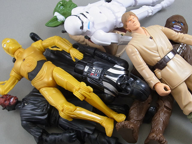 6インチフィギュア8体セットのうちの残骸。一部オリジナルも含まれているが、基本的にどれもベーシックサイズのフィギュアを拡大したもの。すべてのキャラクターに発光ギミックが内蔵されていて、ルークもヨーダもみんな胸が光る。というか中国では6インチ以上のものは発光するのが基本のよう。