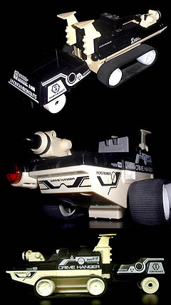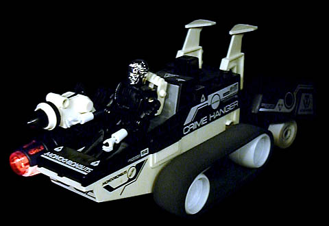 ポリスキーパー期のこのビークルも、発売当初はもうほとんど見向きしてなかったもので、今回初めて手に入れた。ライトが光るギミックが付いてたなんて初めて知った。デザインもなんか「ぬえ」っぽくてイイ意味でレトロSFっぽくて好きになる。いい気になって冷蔵庫の壁を昇らせてみたら、思いっきりキズが入って、子供の頃やらなくて本当に良かったと思った。そんな20年目の現実。