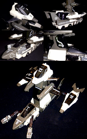 こちらは海外版のサーベイヤー基地に相当するアイテム『Star Defender』がベース。もっともコレはコクピットがサーベイヤー2のものだったり、単独ビークルとしても販売された『Taurion』(艦橋部分)や『Solarion』(サイド部分)が使われていたりと変更も多いんだが、総じて直線的なパーツの組み合わせとモノトーンのカラーリングによって、よりシャープに再構成されたこっちの方が、日本版より断然かっこいい。ああかっこよろしい。