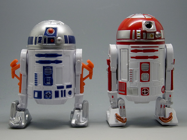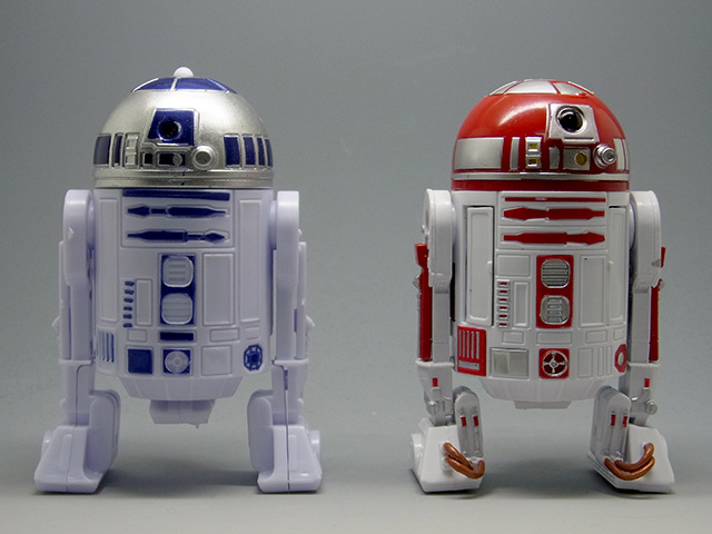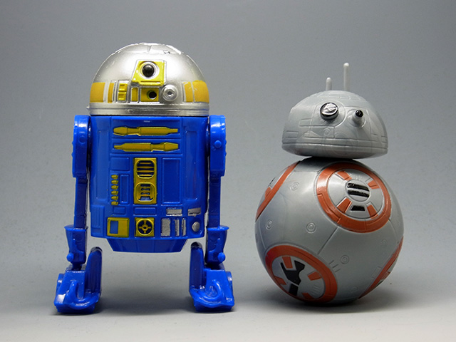 R2-B1(風)だけが気合い入ってるものの、あとの色変えは割とテキトー。まぁやりたいことは分かるんだが。公式にカラーバリエーションがないBB-8は単なる成型色違いで、そこらへんはもっとおおらかというか大胆なニセモノ精神を発揮して欲しかった気もする。こんなとこで萎縮してどうすんの。 |