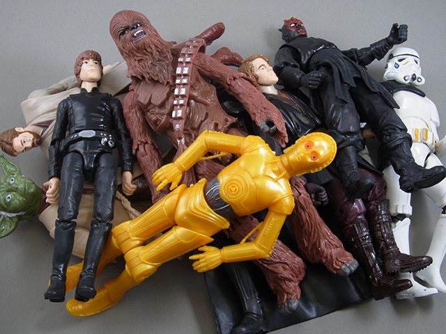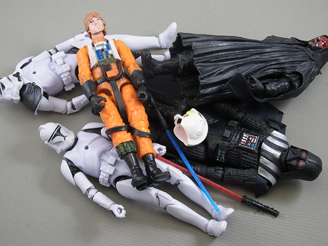 珍しく発光ギミックがない6インチ全10体セットの残骸。1個のR2-D2のためにこれだけゴミにすると、さすがに良心も痛む。基本的にBlack6インチ版のコピーがベースなので素性は悪くない。仕上げが悪いだけ。チューバッカのボディがなぜかグルートのものだ。