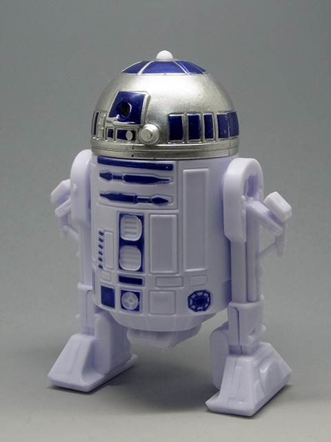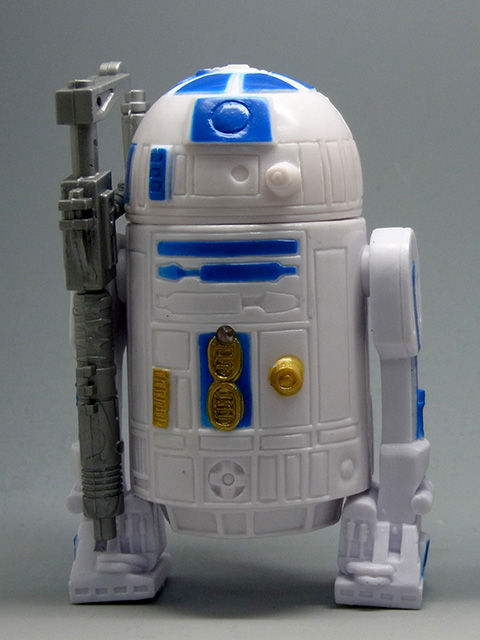 ハズブロのBlack6インチ版R2-D2を模したもの。全ABS製で、再現が難しいバッテリーケーブルとかはあっさり省略。腕というか脚の側面パネルを外してブースターロケットに交換するギミックも(一応)踏襲してる上に、頭頂部のボタンでカメラアイが発光するLEDギミックも付いている。全力で平均点を取りにいった印象。